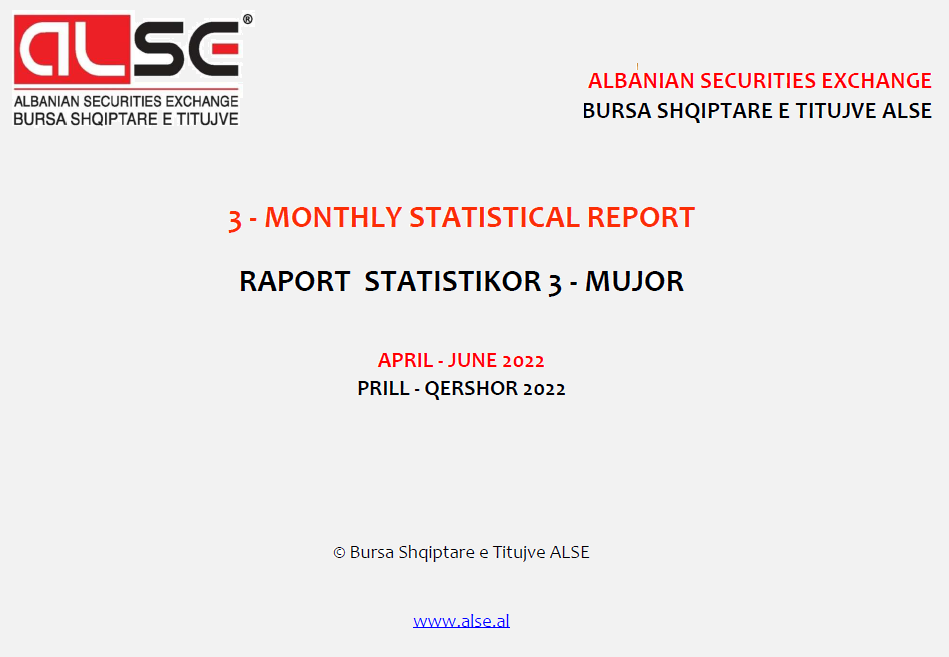Albanian Securities Exchange (ALSE) has the pleasure to inform you on the publication of the quarterly Statistical Report for the period April – June 2022 (Q2-2022).